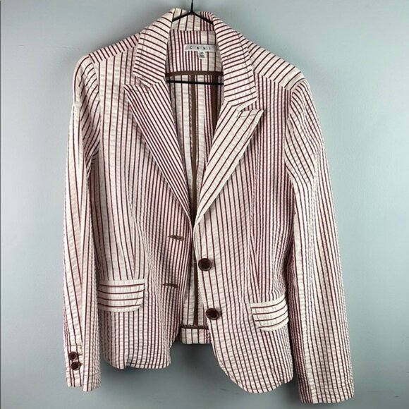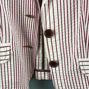 Pinstripe Blazer Jacket in white and red with brown buttons. Size 10