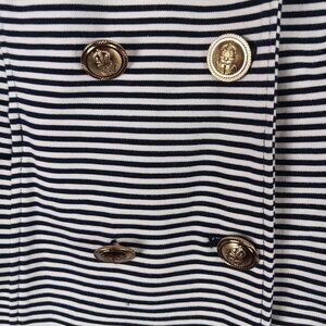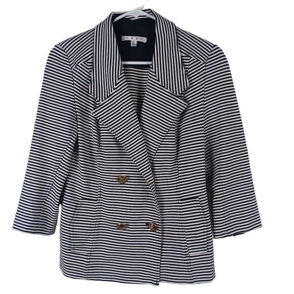 Cabi Striped Nautical Blazer Womens S Navy White Preppy Coastal Double Breasted