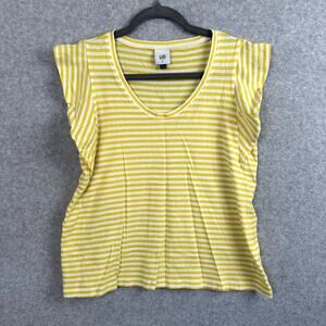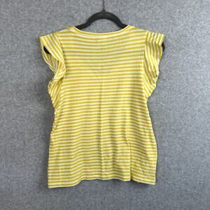 Cabi Striped Ruffle Tee Women's Size Small Yellow White Daisy T-Shirt Style 5748