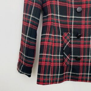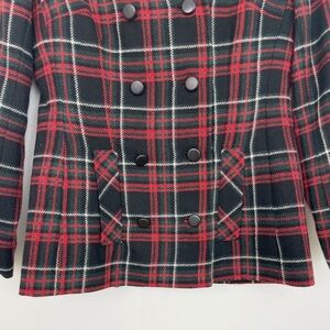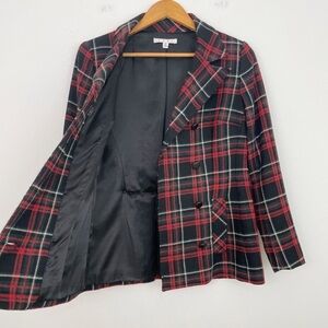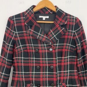 Cabi Manhattan Tartan Plaid Wool Blend Peacoat Button Down Blazer. Black buttons closure. Two front pockets. Collared. Long sleeves.
