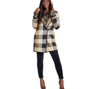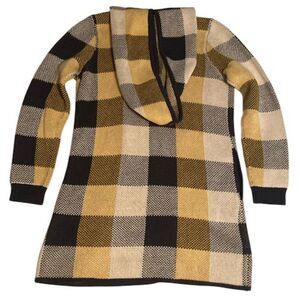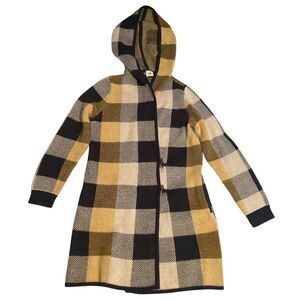 Cabi Sweater Coat Hooded Close-Knit Cardigan Buffalo Plaid Check Size Small