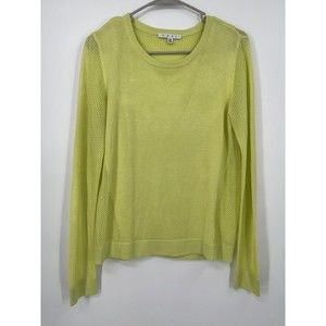 Cabi Sweater Womens Medium Neon Yellow Open Knit Crew Neck Mixed Media Pullover