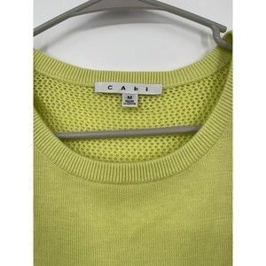 Cabi Sweater Womens Medium Neon Yellow Open Knit Crew Neck Mixed Media Pullover In great condition Smoke free home Xd15