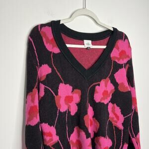 Cabi Sweater Womens Small Black Pink Floral V Neck Pullover Style 4102
