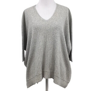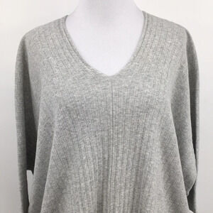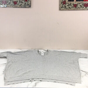 Cabi Sweater Womens XS Gray Ribbed Oversized Cotton Pullover Dolman Sleeve. V Neck. Oversized and boxy. Side slit. 99% Cotton, 1% Other fiber. Pre-owned Condition- no flaws, no rips, stains, or holes.