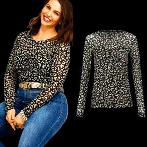 Cabi, silky soft "Sweetheart" long sleeve top in excellent condition without holes or stains. Blouse is lightweight, semi-sheer, has gathered chest ruching and nice stretch for comfort.