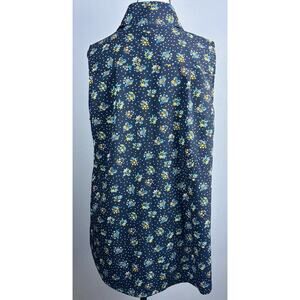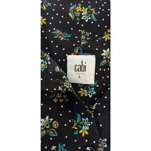 Cabi Sz L Black Yellow Whimsy Btn Slvls Stand Up Back Collar Front Open Blouse. Bottom front panel with pleats.
