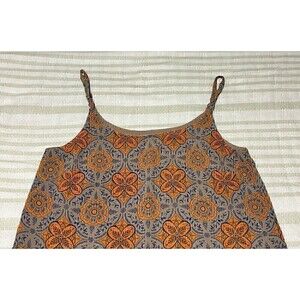 Cabi Tan Brown Orange Green Mandala Tank Top Flowy Size Small adjustable straps