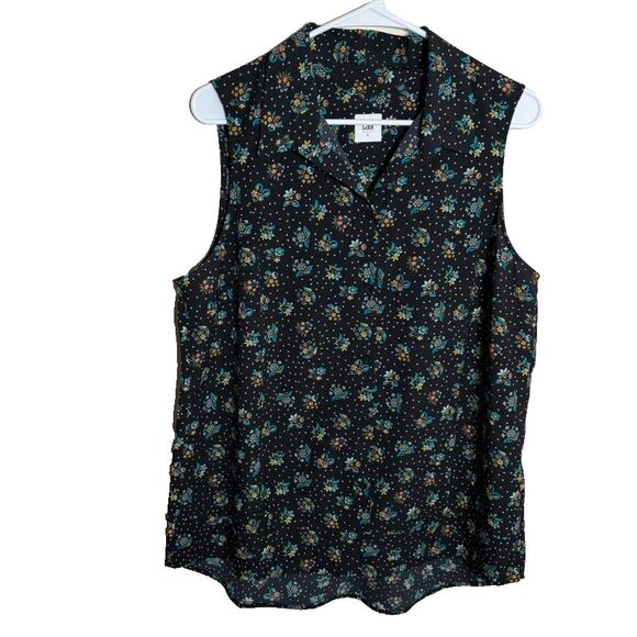 Cabi Tank Top Women's Large Black Floral Polka Dot V-Neck Sleeveless Career