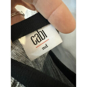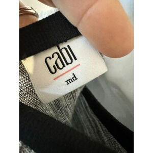 This Cabi tank top is perfect for any occasion. The gray and black color combination makes it easy to match with any outfit. The long sleeves and round neckline provide comfort and versatility. The tank top is made for women and is a regular size medium. The brand, CAbi, is known for its quality and style. This tank top has a cropped style and is perfect for layering with a cardigan or jacket.