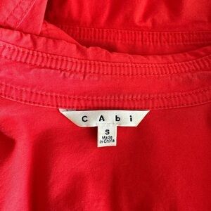 Cabi Taylor Jacket in Vintage Lobster 🦞 which is an orange red color Style 727 Size Small in very nice used condition. The gold tone buttons have a little tarnish but other than that it’s in great shape. Super flattering orange red color with gold tone buttons down the front adds sophistication to this vibrant jacket made with stretch-kissed cotton for lightweight layering. The back is cute too with three ruffles on the bottom. Has four pockets on the front, two with buttons, two without. 97% cotton 3% spandex so has a little stretch! Super cute jacket coming and going! Great for layering and the color is so pretty 🦞