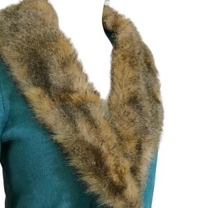 Cabi Tearoom 5 Button Cardigan In Teal Removable Faux Fur Collar #3018 Medium