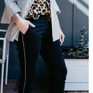 Cabi The Peyton Trouser Size 8 Women's Black Pants Side Stripe 5313 Slim Fit