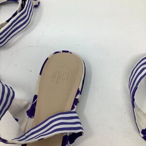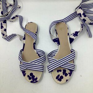 Cabi Tied Up Sandals 10 blue white striped floral ankle wrap