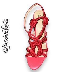 Introducing the cabi Tiptoe Sandal, a stylish addition to your summer wardrobe! This chic sandal features Hibiscus Textile in a vibrant color with gold-tone hardware accents for a touch of elegance. The adjustable ankle strap with buckle closure ensures a secure fit, while the lightly padded leather insole provides all-day comfort. The smooth leather sole offers light traction, while the 4-inch heel adds a flattering height to any outfit.