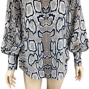 Cabi Top Blouse Size XS Xsmall Serpentine SnakePrint Blouse Wide Cuff Long Sleev