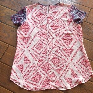 Cabi sheer sleeveless top, Size Medium, peephole button close at back top, armpit to armpit approximately 20” across, approximately 27” long, lightly worn