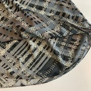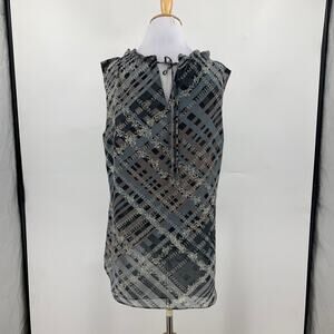Cabi Top Womens M Medium Plaid Floral Graphic Trellis Ruffled Collar Keyhole Tie
