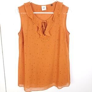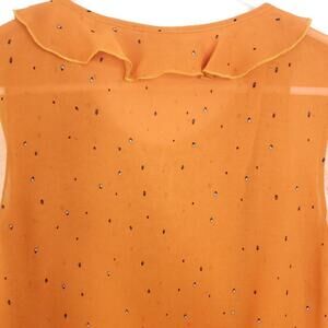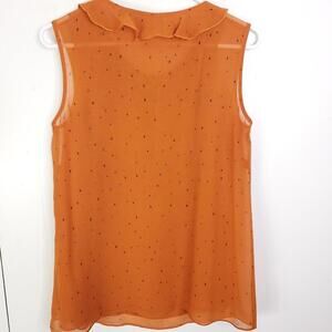 Cabi Top Womens Small Ruffle Keyhole Neck Orange Dotted Semi Sheer Shell Blouse
