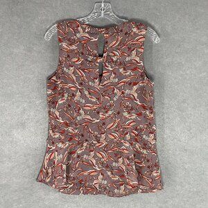 Cabi Top Womens Sz S V-Neck Bird Crane Print Sleeveless Flowy Blouse Career