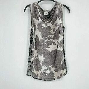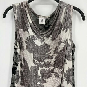 Cabi Tops Women's XS Gray White Floral Tunic Cowl Neck Sleeveless Relax PulloverSize XS