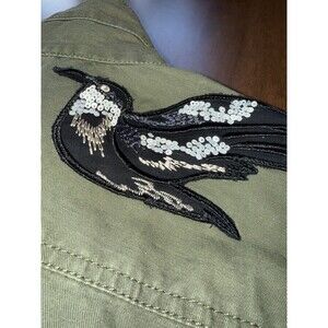 Cabi Utility Military Jacket Sequin Embellished Bird Star Patch Army Green Sz S