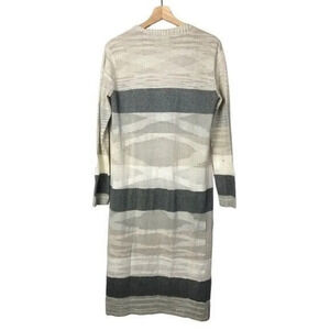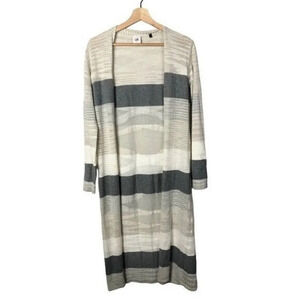 Cabi Vineyard White & Gray Stripe Duster Cardigan Sweater