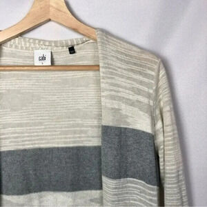 Cabi Vineyard White & Gray Stripe Duster Cardigan Sweater S #5018