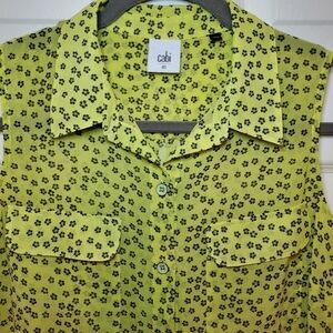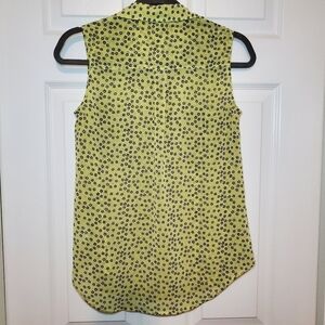 Cabi Viola Blouse #5348 Yellow Black Sheer Sleeveless Button Front Top Sz XSmall