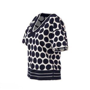 Cabi Volley Polka Dot Pullover Reversible Short Sleeve Sweater Blue White Size S