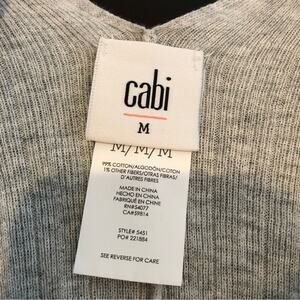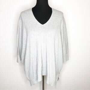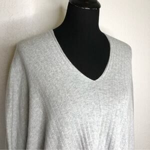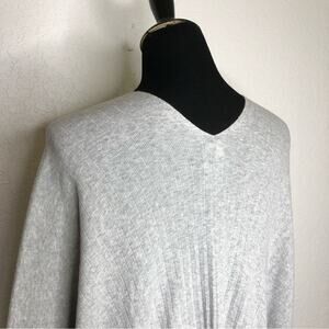 Cabi gray Watson dolman sleeve ribbed v neck sweater. Pullover style with v neckline. Ribbed material. Dolman style sleeves. Side slit hemline. Oversized fit. Size Medium. Excellent preowned condition. Cotton other blend. Machine wash. Style # 5451.