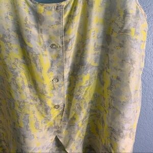 Cabi Whisper Button Back Silk Yellow Gray Tank Top