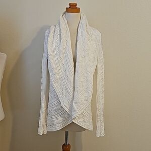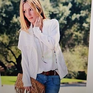 Cabi White Cable Knit Circle Cardigan Sweater Size m