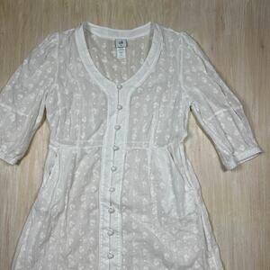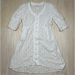 Cabi White Embroidered Cotton Boho Feminine Button Front Casual Midi Dress 12