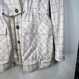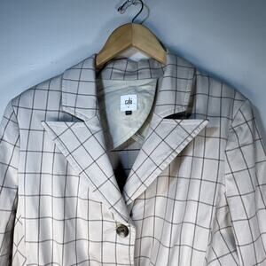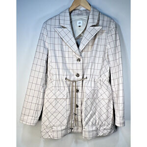 Cabi Windowpane Blazer Jacket Womens Large L Tan Beige 6026 Cinched Waist Preppy