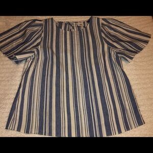 Cabi Navy and White Stripes Chambray Doft Comfy Versatile