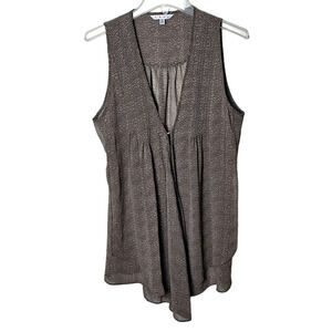 CAbi, Women Medium, Gray with Gray Polka Dots -- Features: V-neck, Sleeveless, Hook & Eye Closure, Flowy/ Lagenlook, Chiffon, Overlay blouse Vest