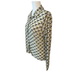 Cabi Women Mosaic Mesh Button Down Shirt Long Sleeve Size Medium Geometric Green