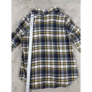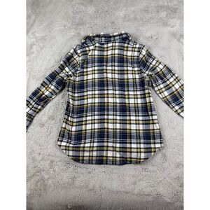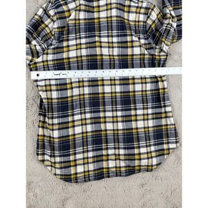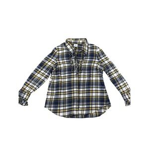 Cabi Women Size M Plaid Ruffle Front Long Sleeve Button Down Flannel Shirt Top