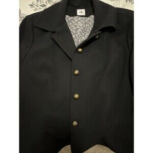 The Cabi Womens 14 Abbott Cropped Jacket in black is a stylish and versatile piece. Made from polyester ponte knit with metal buttons, this short jacket features a 3/4 sleeve and a regular fit. The jacket is perfect for casual occasions and can be worn in all seasons, making it a must-have in any woman's wardrobe. With its classic button closure and sleek design, this CAbi jacket is both practical and fashionable, adding a touch of sophistication to any outfit.