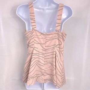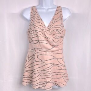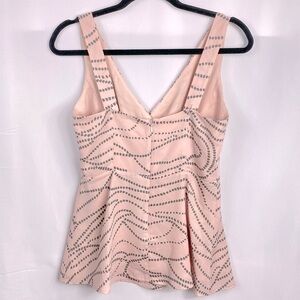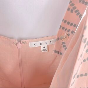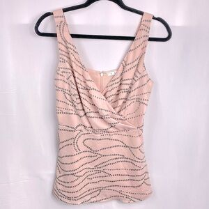 This Cabi Women's tank top is the perfect addition to any wardrobe. With a flattering V-neckline and adjustable straps, it's versatile enough to be worn for any occasion - whether you're dressing up for a wedding or keeping it casual for a day out with friends. The pink and gray polka dot pattern adds a playful touch, while the faux wrap design and zipper closure give it a stylish edge.
