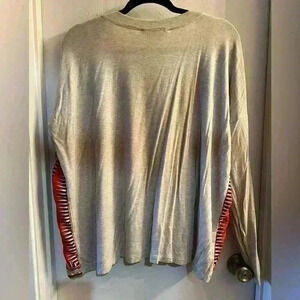 Cabi Womens Top Size S Oversized Red Beige Geometric Flowy Silk Blouse Top