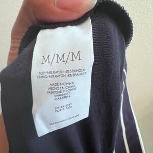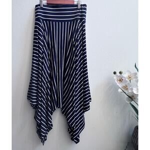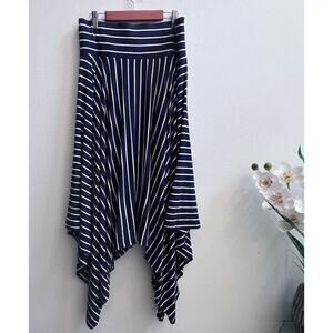 Cabi Womens Asymmetrical Striped Twirl Skirt Navy Blue white Stripe Size Medium