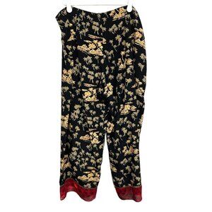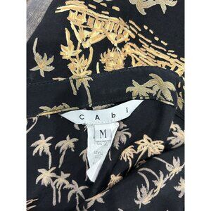 Cabi Womens Black & Gold Tropical Print Wide Leg Pants Size M