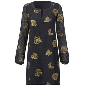 Cabi Women's Black Swiss Dot Gold Foil Occasion Shift Dress Style #3697 Size S