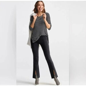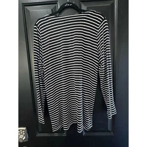 Cabi Women's Black & White Stripe Pattern Long Sleeve Side Snap T-Shirt Size M
