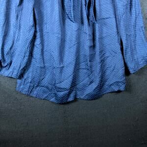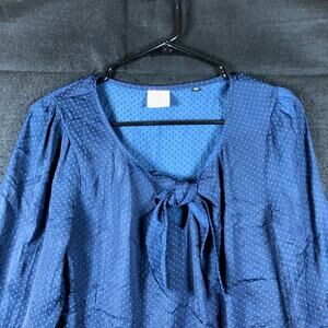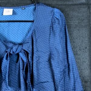 Cabi Womens Blouse Blue Dotted Front Tie Key Hole Long Sleeve Small