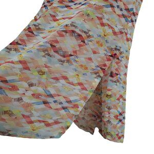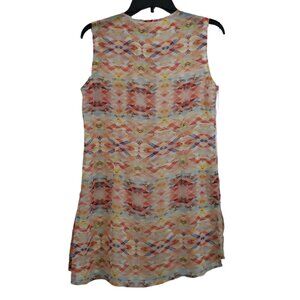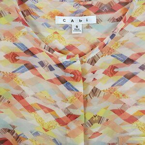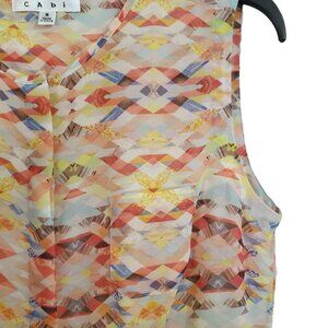 Cabi Womens Blouse Size Small Tunic Geometric Sheer Button Closure Side Slits
