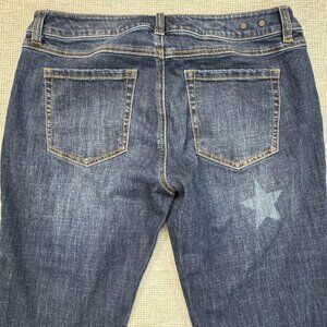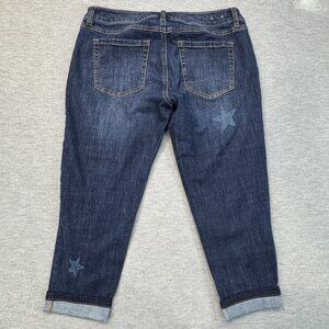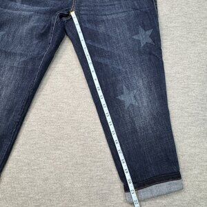 Cabi Womens Blue Denim Stars Slim Fit Boyfriend Jeans Cropped Rolled Cuffs Sz 6