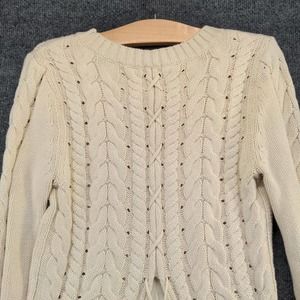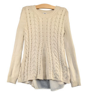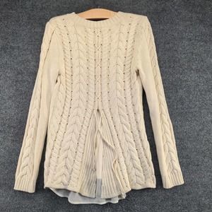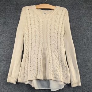 Cabi Women's Cable Knit Pullover Sweater Cream Size Small Knit Cotton Blend